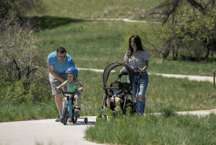The family of four likes to take short drives to recreational spaces. “We’ll drive to Cherry Creek State Park and let the kids run around – that’s huge.” Nick says. “And there’s that forest over by Franktown, Castlewood Canyon. It’s awesome. Having those really close is super nice for the dogs and the kids.”