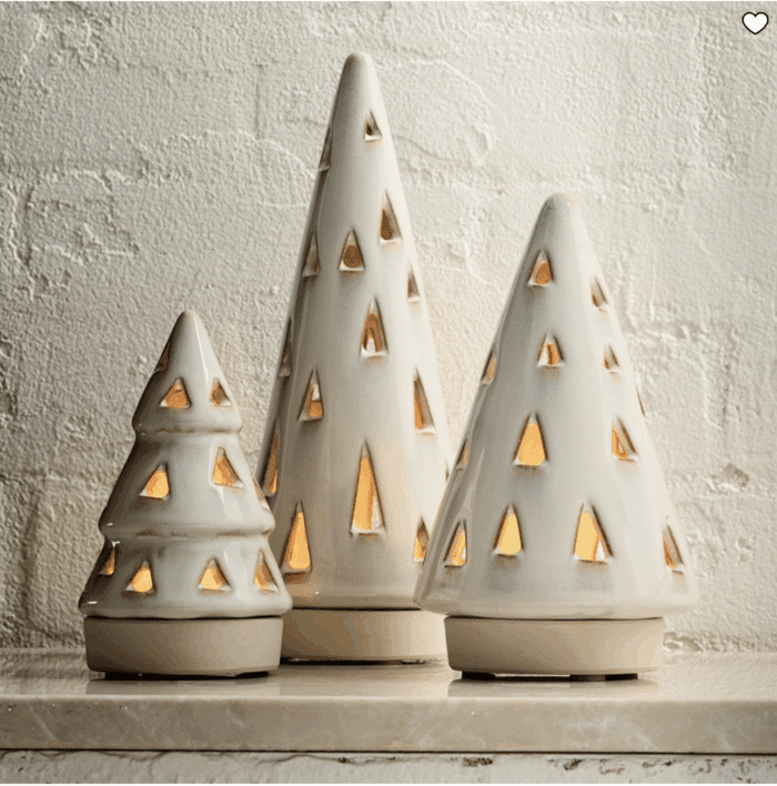 Shelterness takes the notion of minimal holiday décor to the next level with dozens of ideas for bowl displays, mantel swags, “wall Christmas trees” and tabletop décor. West Elm’s collection of Punched Paper, Stacked Wood, Wood and Brass, Bottlebrush and Ceramic Tealight Trees offers a variety of simple holiday décor trios that can transform any room easily and inexpensively (and they’re almost all on sale)!