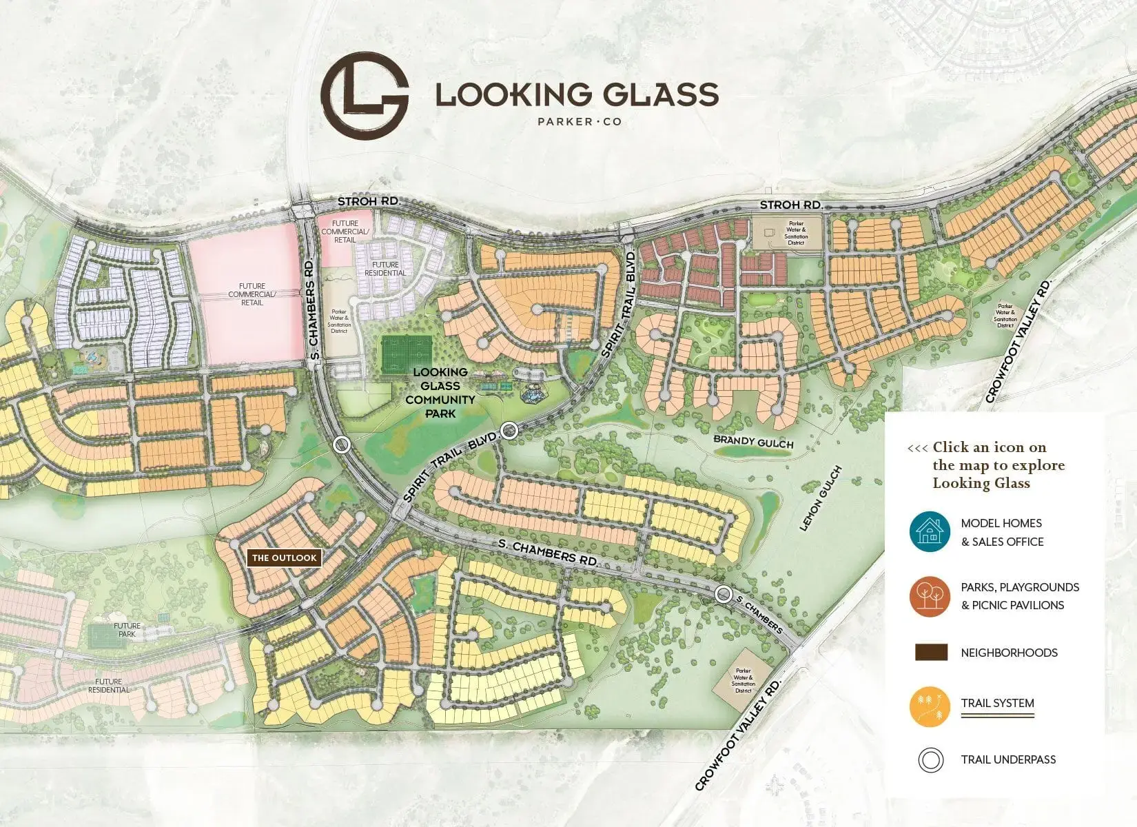 Explore the first neighborhoods of Looking Glass. See how the land has created its own places for residents to call their own. Topography that is emblematic of our locale made even better by twisting trails that pour into geographically unique parks. This is just the beginning. And what’s just over the horizon will complement and elevate what’s already here.
